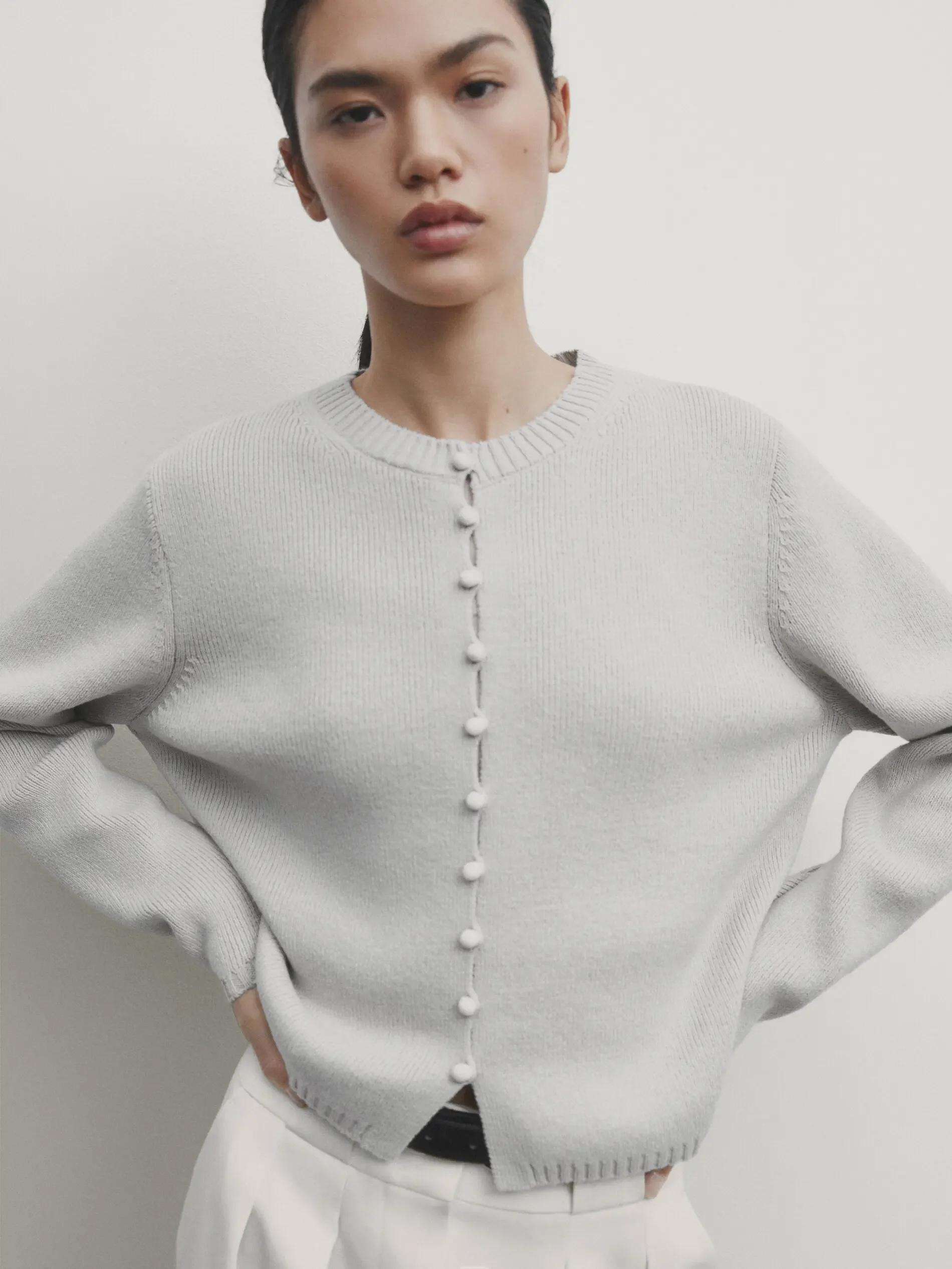 new style of Women's casual French minimalist button-short crew-neck knit cardigan jacket