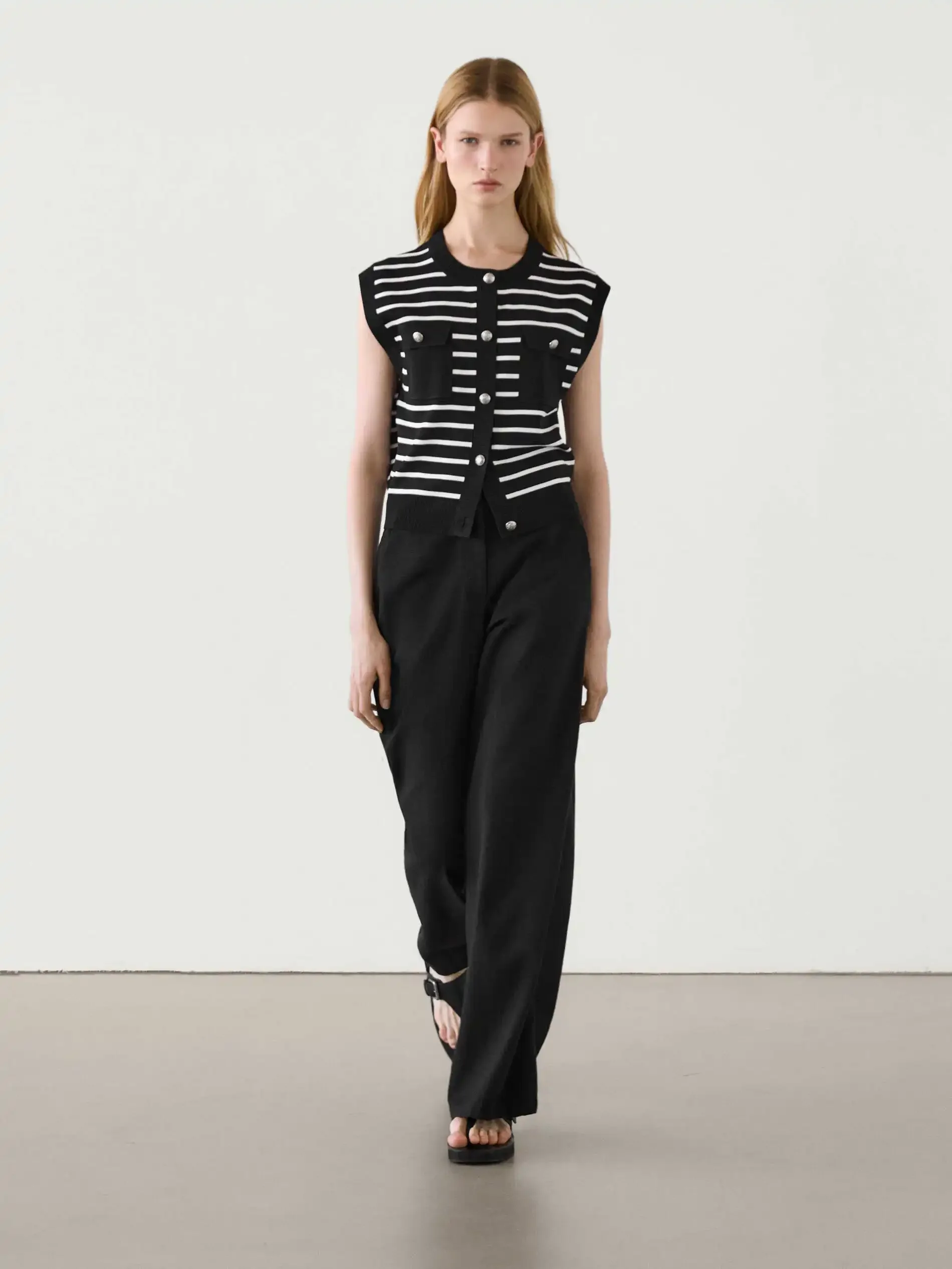 whether full opening:Yes Hign-concerned Chemical:None Release Date:Spring 2025 Craft of Weaving:Knit Pattern:Loose-fitting Yarn Thickness:Regular yarn Season:All Season Age:Middle Age Place Of Origin:China (mainland) Pattern Type:Striped Gender:Women Sleeve Length(cm):Sleeveless Style:Office Lady Decoration:Button Material:Nylon,POLYESTER Sleeve Style:Regular Collar:O-Neck Clothing Length:Regular Material Composition:cotton Elasticity:Slight Strech Fit Type:Loose Origin:Mainland China CN:Jiangsu Closure Type:Single Breasted