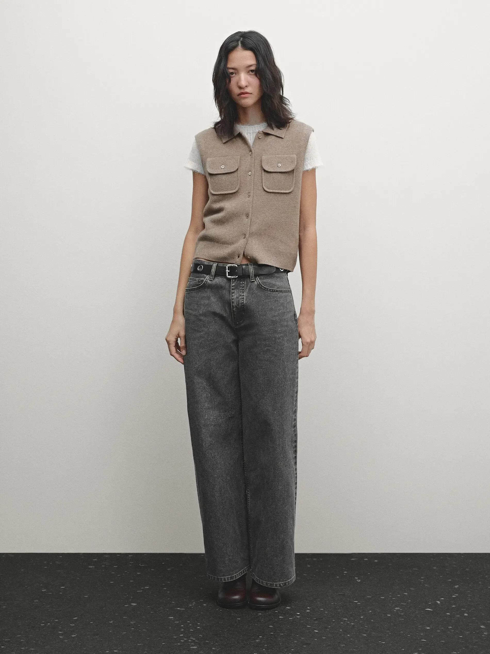 spring new style of Smart commuter casual grey brown short knit vest vest