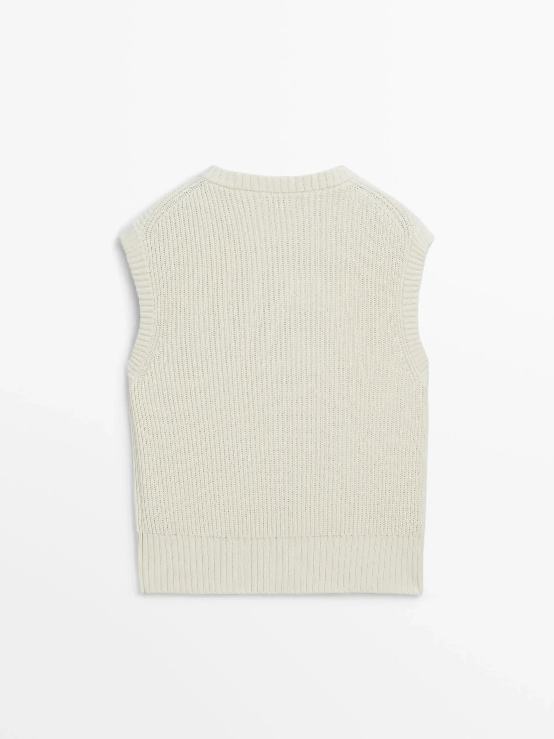 spring new style of Women's casual fashion slouchy off-white sleeveless sweater knit cardigan